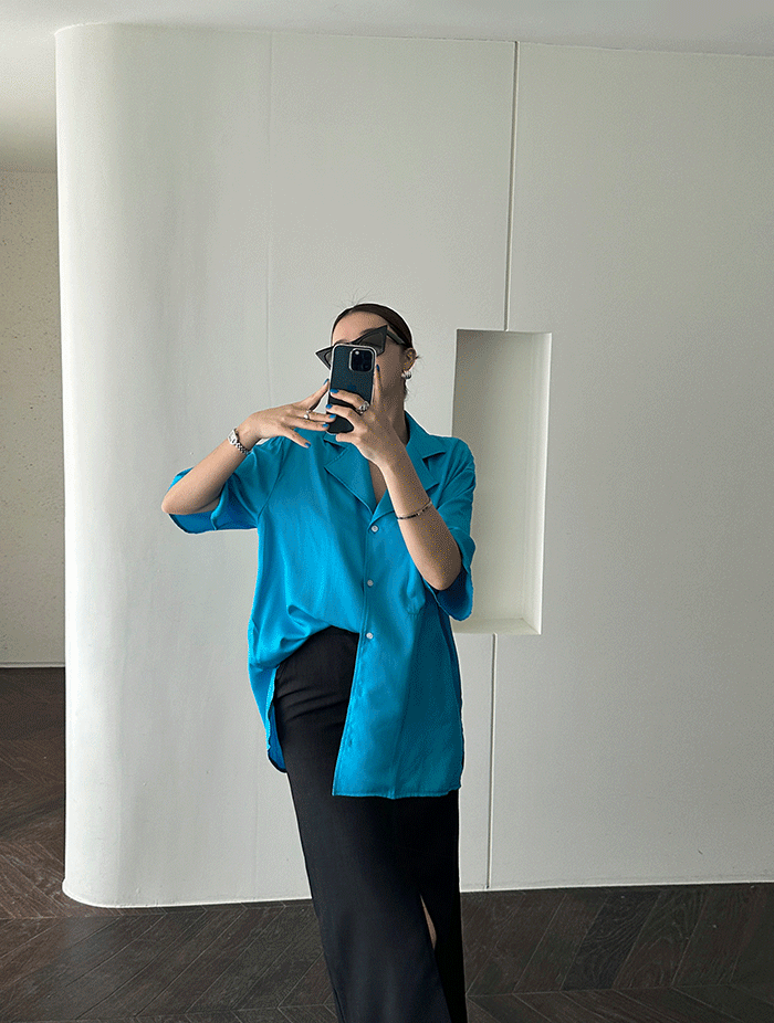 소젠 새틴 노치드 박스핏 셔츠 (3col)