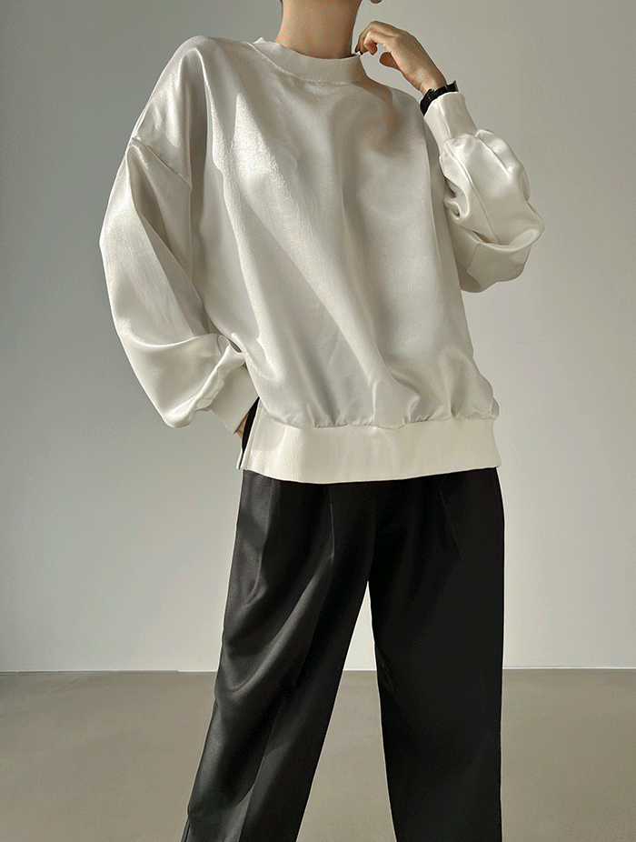 던스 라운드 오버핏 새틴 맨투맨 (3col)
