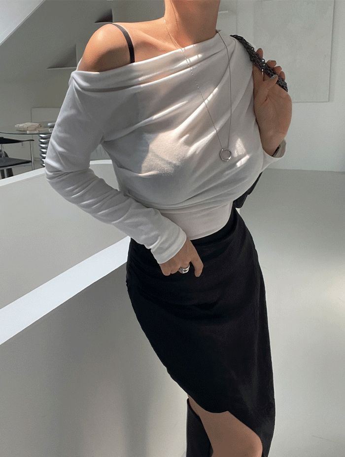 쿠스 드레이프 오프숄더 티셔츠 (4col)