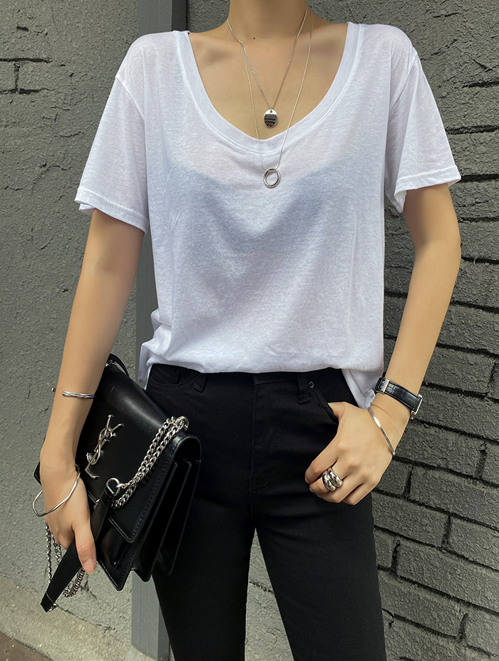 먼디론 심플리 딥 U넥 코튼 쿨티셔츠 (4col)