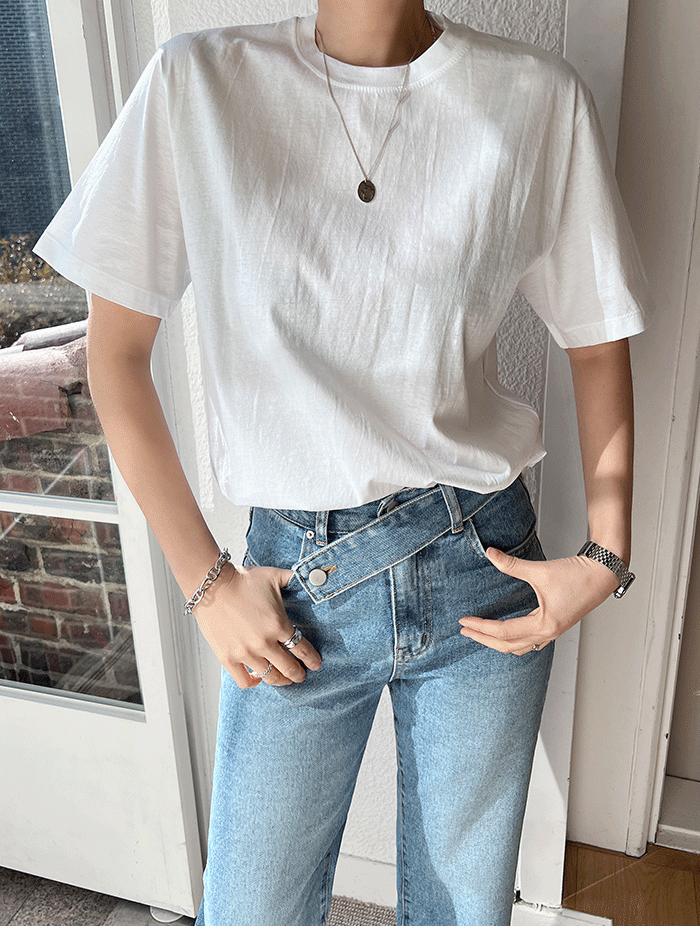 키보 슬림 라운드넥 하프 티셔츠 (8col)