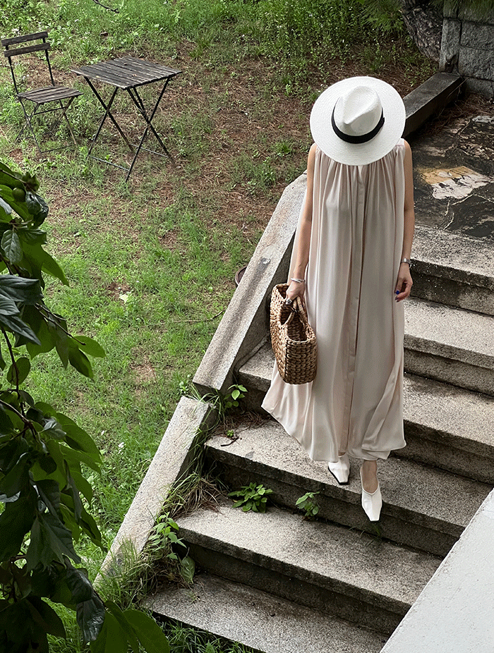 쿠디앙 플리츠 롱 나시원피스 (6col)