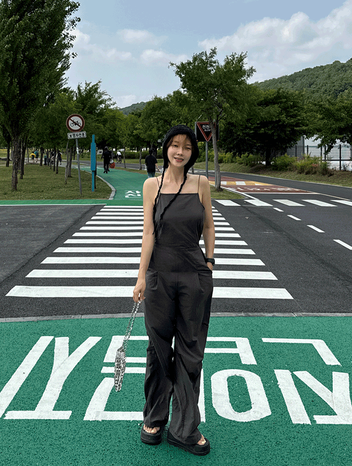 볼리 셔링 홀터넥 점프수트 (2col)