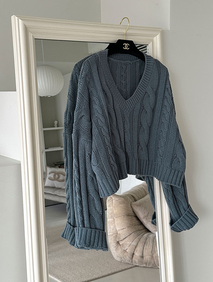 테본 꽈배기 브이넥 오버핏 니트 (3col)