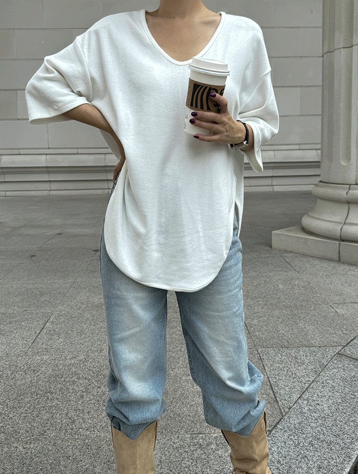 오멜 U넥 기모 박시 티셔츠 (3col)
