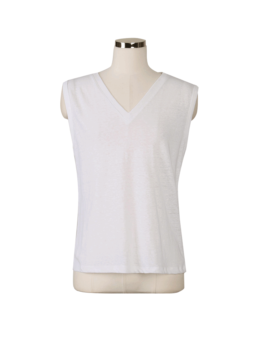 데볼 브이넥 골지 니트 슬리브리스 (4col)