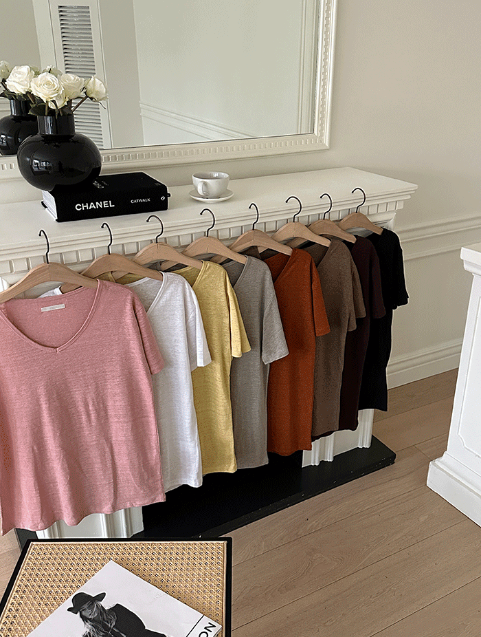 세이버 린넨 베이직 브이넥 티셔츠 (9col)