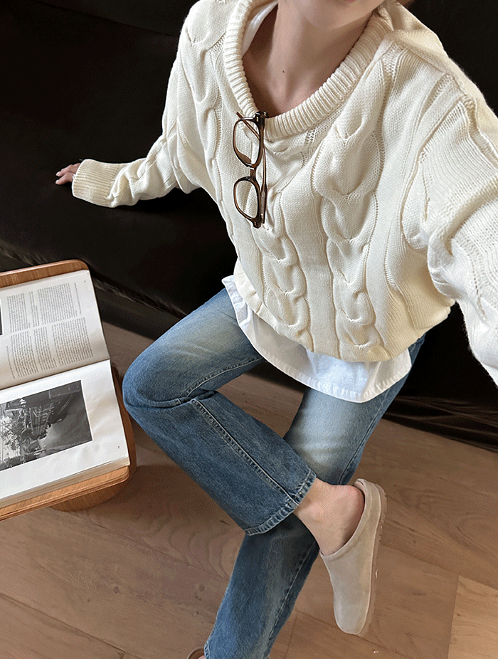 미켄 라운드 루즈핏 꽈배기 니트 (6col)