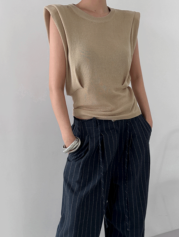 네블 핀턱 패드 니트 슬리브리스 (4col)