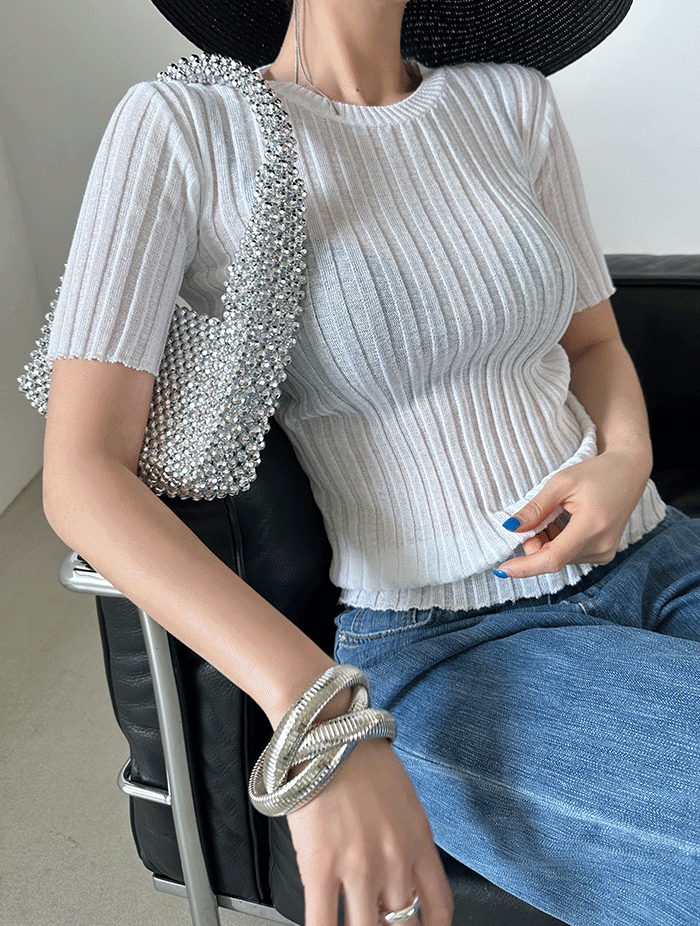 스터닝 찰랑 캡소매 라운드 니트 (5col)
