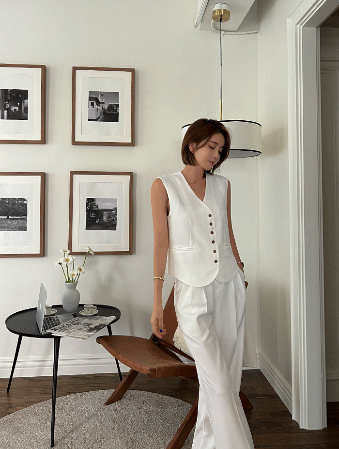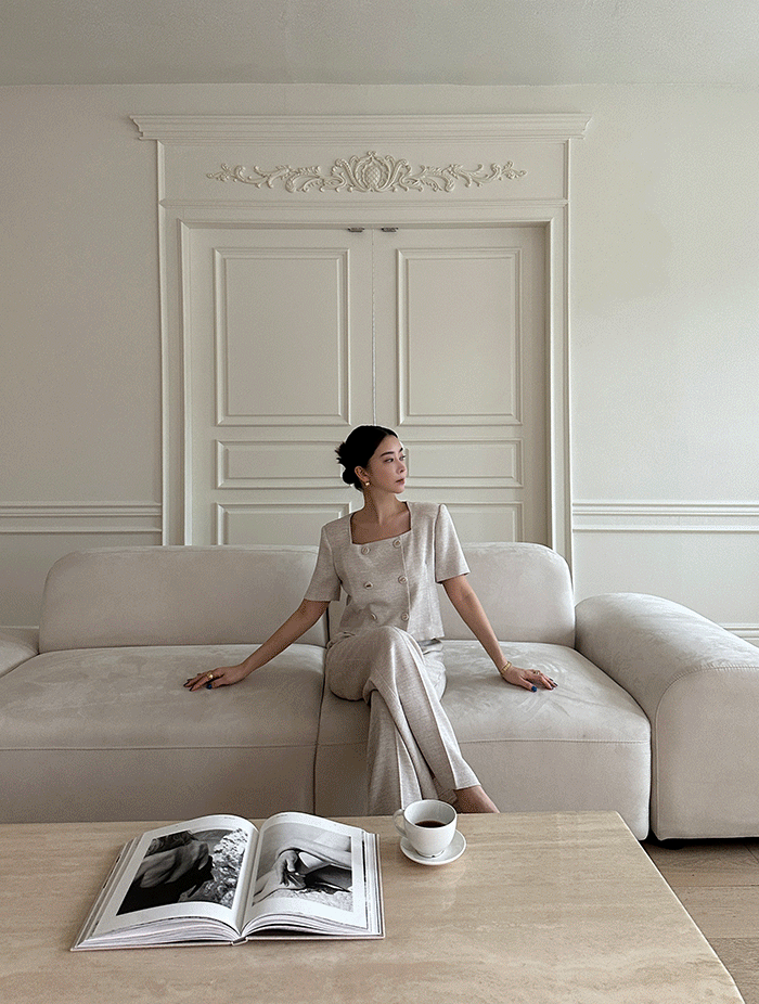 메이트 자개 버튼 린넨 브이넥 가디건 (11col)