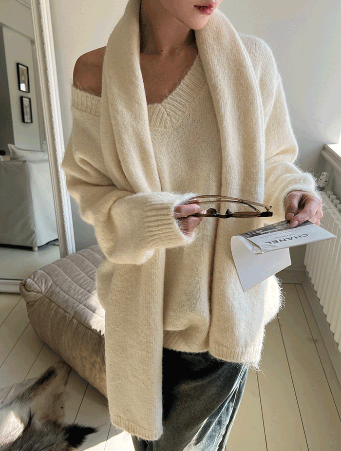 에비사 린넨 팬던트 브이넥 니트(9col)