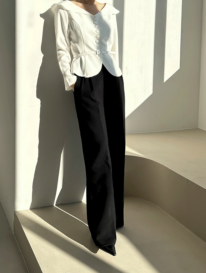 크룬 벨티드 핀턱 와이드 슬랙스 (3col)