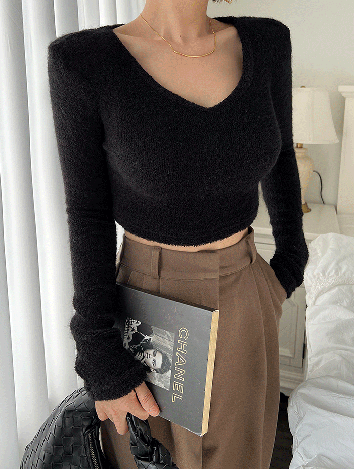 글리 브이넥 케이블 크롭 니트 (6col)