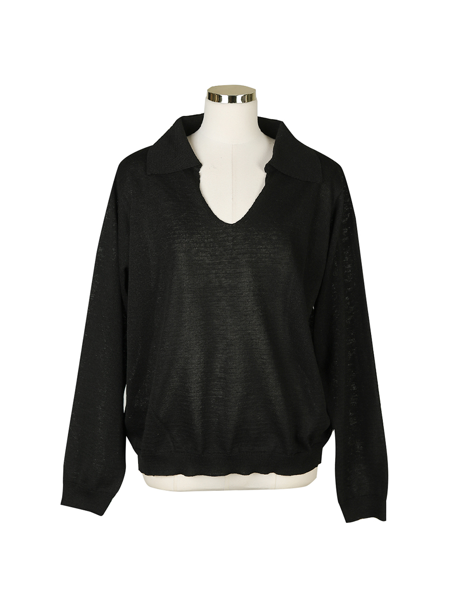 커넥트 린넨 오픈 카라 니트 (3col)