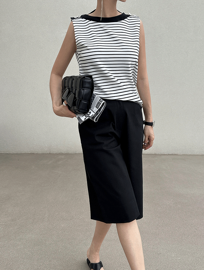 포키 스트라이프 견장 슬리브리스 (3col)