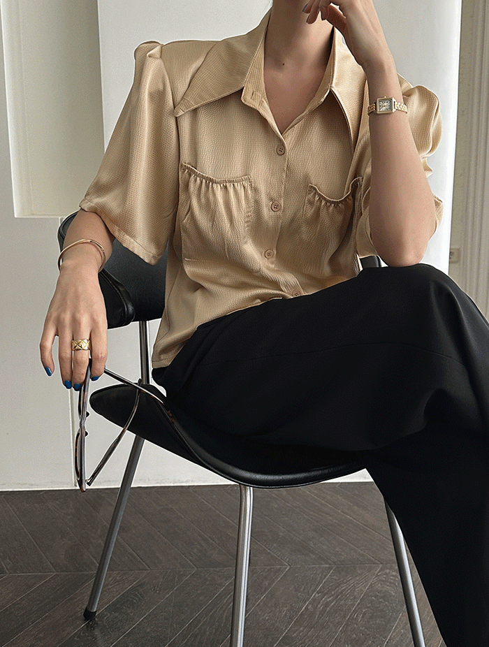 반테프 글로시 드레이프 캡소매 블라우스 (3col)