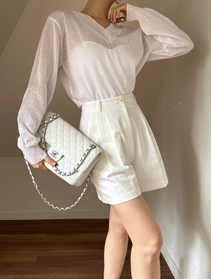 코룬 린넨 브이넥 시스루 니트 (4col)