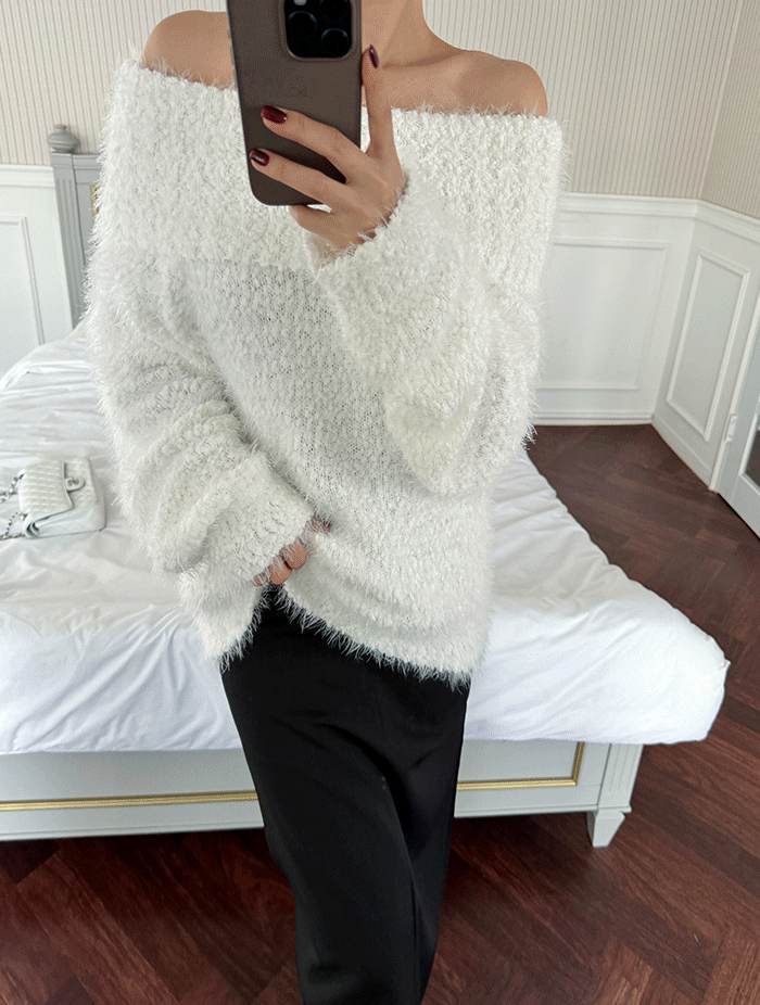 포몬 오프숄더 부클 퍼 니트 (4col)