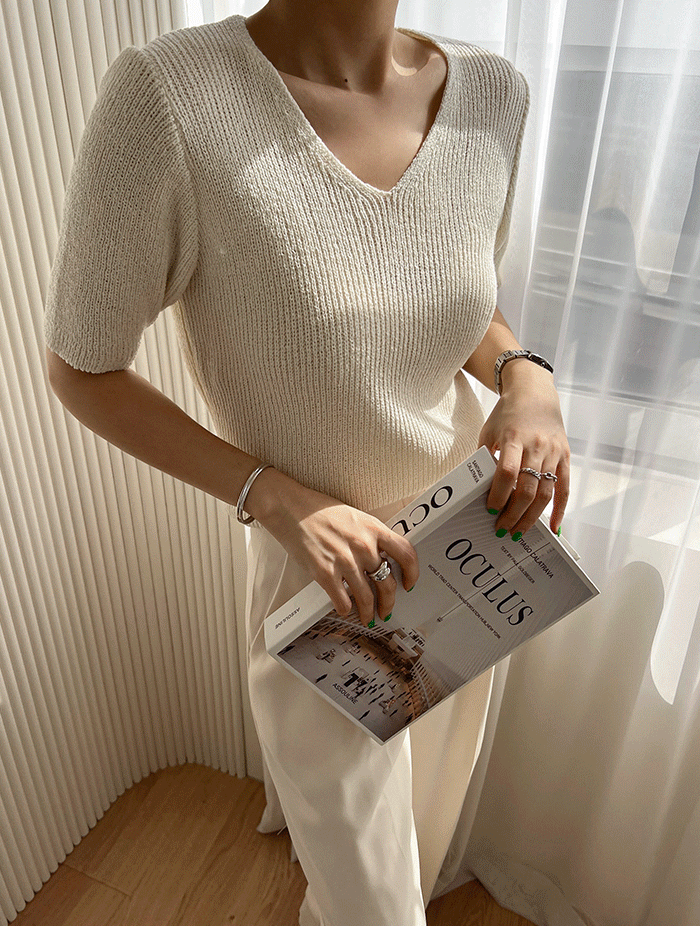 스터닝 찰랑 캡소매 라운드 니트 (5col)